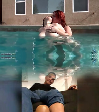 Sandy-haired Abigaiil Morris is having some mischievous fun in the sun shaking her big tits and rump by the pool, curvy brunette Sammy Tor