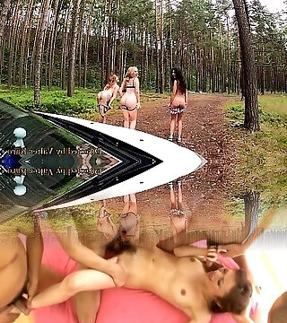 Pick up of three sandy-haired female college girls jogging in the forest - girls piss - nicely jerked off, see you later