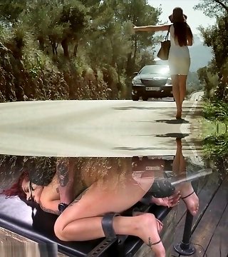 Astonishing bootylicious Vera Bliss has superb time with busty babe in the car