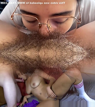 Hirsute lesbian licked and fingerblasted by naughty teen