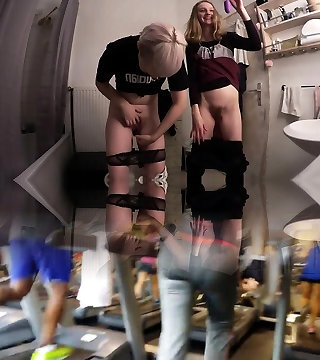 Two teen lesbians in leggings practice dry humping, caressing and licking each other's pussies!