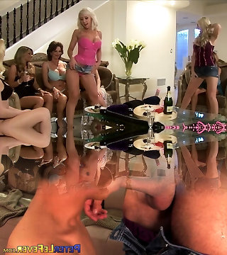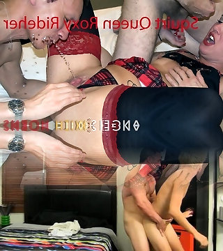 Bisexual Spray Princess Roxy Rideher and friend Lila-Rose have a bareback gangbang party with 5 successful guys