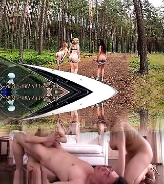 Pick up of three sandy-haired female college girls jogging in the forest - girls piss - nicely jerked off, see you later