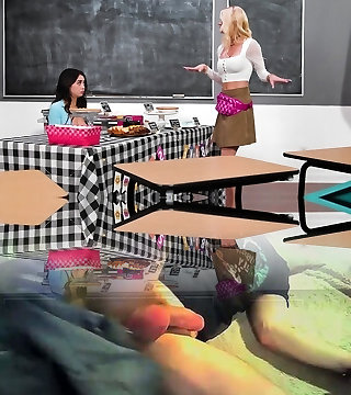 Busty porn industry star Alura Jenson trains Charlotte Sins how to eat puss