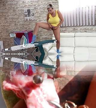 Two smooth-looking chicks with the blond hairs penetrate each other