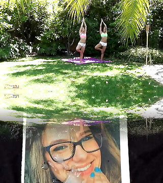 Morning yoga and scissoring are precisely what the two lesbos needed to relieve stress