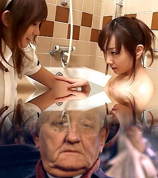 Horny Japanese babes enjoy having lesbian sex in the bath