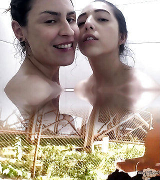 Pretty young brown-haired showering her gf in piss and enjoying a vibra