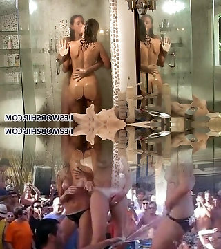Cute big donk lesbians lick their delicious beavers while taking a shower - Porn in Spanish