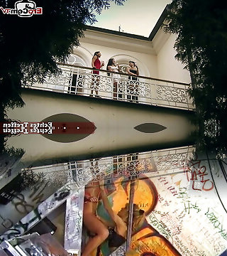 Ebony and white lesbian sluts pummeling outdoors