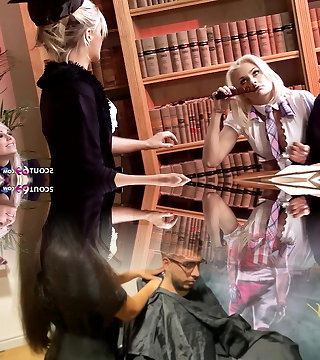 Funny Horny Lesbian College Girl Group Sex in Classroom