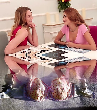 Lovely teenies are playing on PlayStation and playfully start kissing, exploring lesbian adventures