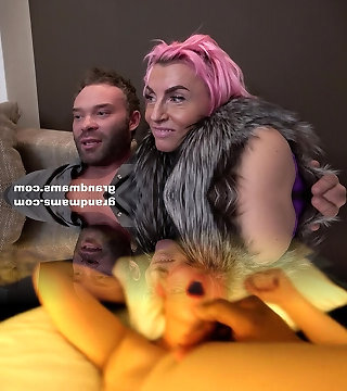 Muscular Cougar plays with a skinny housewife