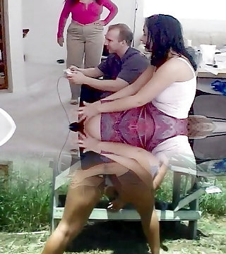 Ugly lesbian thin girl got caught from behind while working
