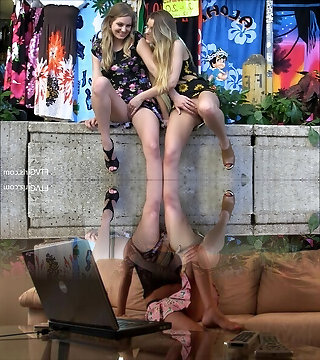 Watching two lesbians topless on cam