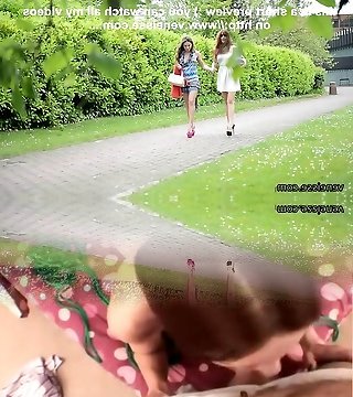 Rita and Madeline inexperienced lesbian couple walking and demonstrating pussy outdoors