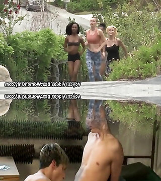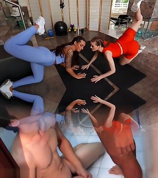 Horny Lesbian Gang Babes In Yoga Fuck Orgy