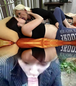Curvy granny and steamy blonde beauty make out it kinky lezzie couple