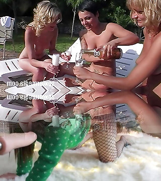 Licking Pussy outside with Camilla, Cheyenne, Candy and Shooting Star