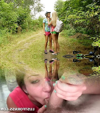 Two cute lesbos went to a local forest and had a 3some with a handsome man