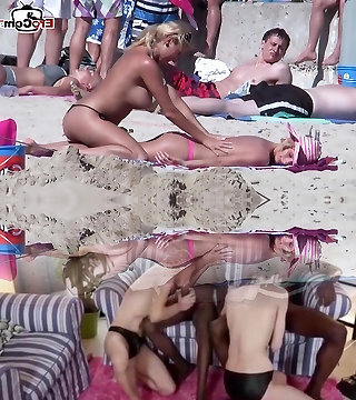 PUBLIC BEACH Spycam - German teens try girl/girl games in mallorca holiday