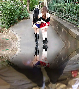 Cute Girl tricked Skinny Classmate to Girl-on-girl Public Hook-up on way home