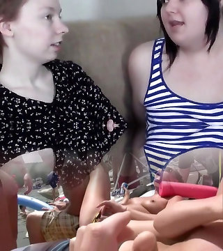 Amateur honeys Elizabeth Evans and Adelaida play with a dildo