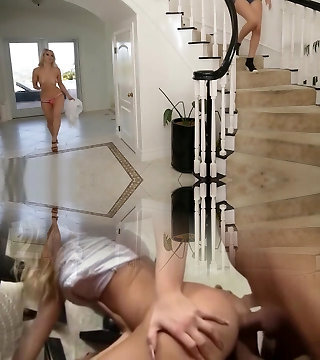 Blonde MILF Julia Ann trains her girlfriend how to ha