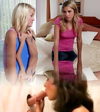 Petite teen gets a lesson in girl-on-girl fuckfest by a mature blonde