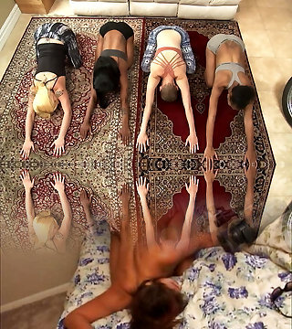 3 Young Damsels Gym at Home Sports Slow Sensual Dances in Sexy Undergarments