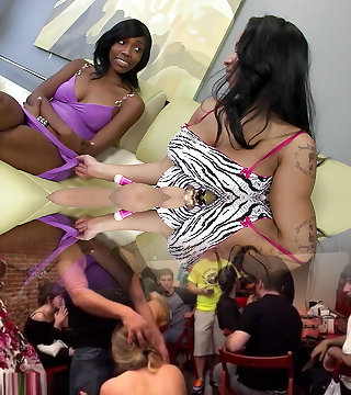 Black and white lesbians joined by stubby dicked bore