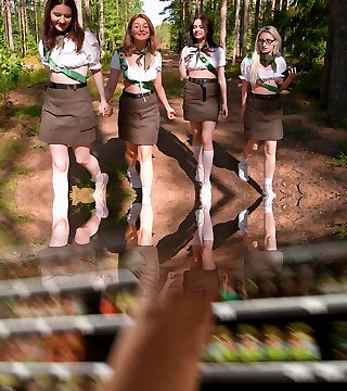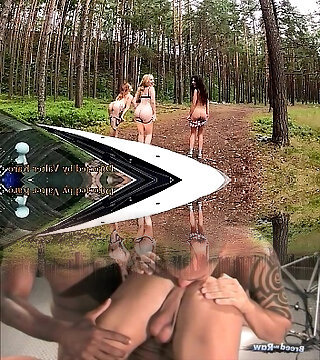 Pick up of three sandy-haired female college girls jogging in the forest - girls piss - nicely jerked off, see you later