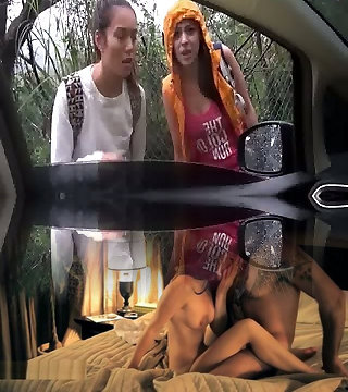 Female Chick Fuck Show With Aspen Rae And Shae Snow On A Car!