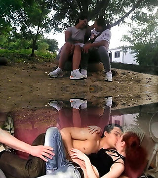 Busty black girl and sexy ginger are blackmailed by perv dude to fuck each other and then pound him