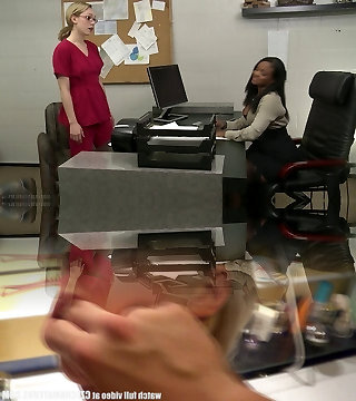In the office a black girl and white damsel hook up on a couch