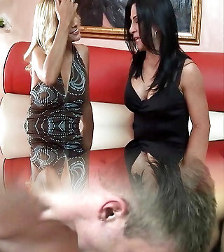 Horny lesbo glamour MILF eats babes pussy