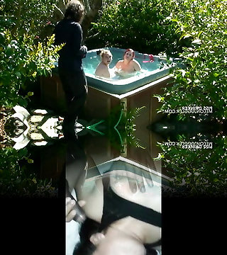 Hardcore Three-way with 2 Hot Babes Outdoors at the Pool