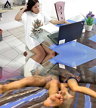 my stepsister is video calling with her boyfriend so I join in and we pound so her boyfriend can watch us.