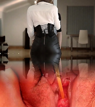 Hot ass lesbian on office seat receiving lovely pussy licking