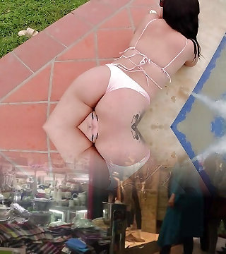A magnificent curly brunette lesbian with a perfect booty and faux tits is satiated outdoor by her girlfriend