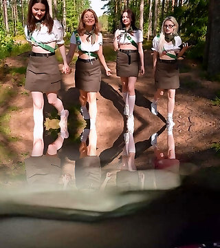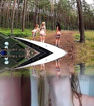 Pick up of three sandy-haired female college girls jogging in the forest - girls piss - nicely jerked off, see you later