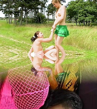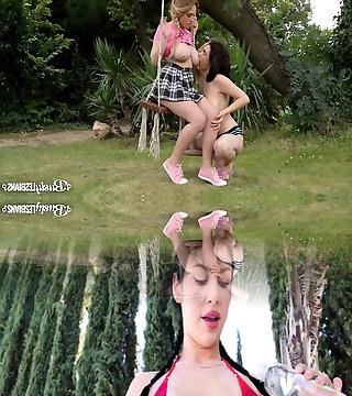 Marvelous gals Angie Koks and Alexis Brill pleasure each other outdoors