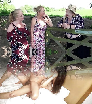 Naked fat ugly mature whores are prepped to go lezzy a bit outdoors