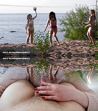 PUBLIC BEACH Spycam - German teens try girl/girl games in mallorca holiday