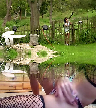 Two seductive teenagers is toying and fingering each others cooters outdoor