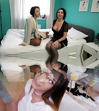 Wild lesbian threesome with pornstars in sexy lingerie and pantyhose