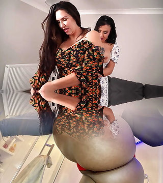 Girl/girl Killer Play and Tease - curvy MILFs in PVC pussy lick, big ass play, fingering (Arya Grander)