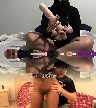 Tearing Up her lesbo anal canal with a rotating dildo that stimulates the ass as well